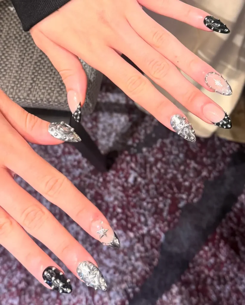 Minimalismo com glamour: a clássica francesinha ganha força com pedrinhas em diferentes tamanhos, provando que até o básico pode ser altamente valorizado.